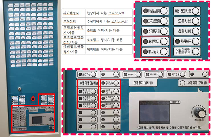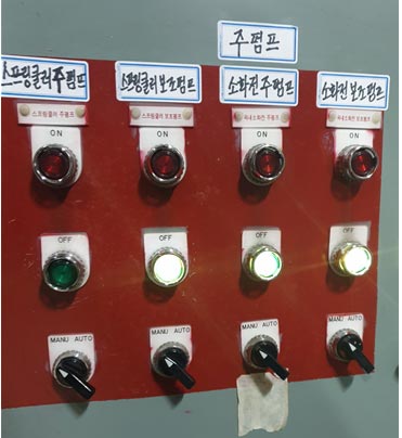 수신기에서 조작 및 동작확인을 하는 것 외에 펌프실 내에도 조작 기능이 있습니다.